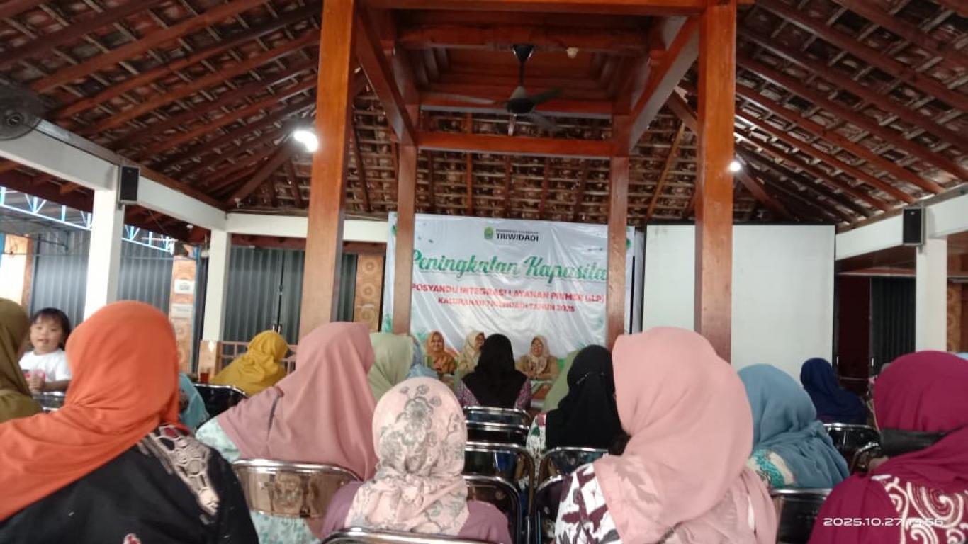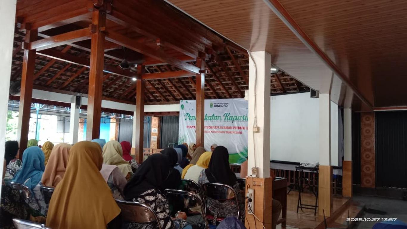 Triwidadi Info (28/10). Bertempat di Pendopo Kalurahan triwidadi dilaksanakan kegiatan pertemuan Kader se kalurahan Triwidadi. Kegiatan ini rutin dilaksanakan setiap tangga 25 setiap bulannya, kegiatan ini selain untuk peningkatan kapasitas bagi kader kesehatan dimasing-masing padukuhan juga sebagai wadah diskusi permasalah kesehatan di padukuhan masing-masing. Baik dalam pencegahan, penanganan, perawatan dan pengawasan masalah kesehatan yang ada dimasyarakat. Sebelum acara dilakasanakan terlebih dahulu kader melakukan cek tensi, ukur lingkar perut, ukur lingkar lengan sebagai kontrol kesehatan setiap bulannya dan dicatat sebagai dokumentasi.