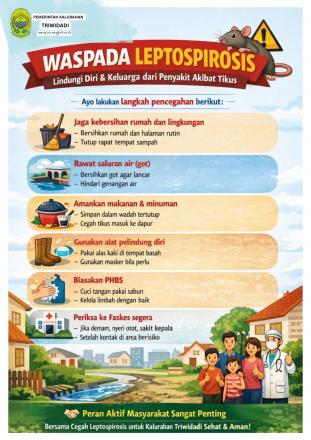 Pemerintah Kalurahan Triwidadi mengajak seluruh warga untuk meningkatkan Perilaku Hidup Bersih dan Sehat (PHBS) serta berperan aktif dalam pencegahan Leptospirosis demi menjaga kesehatan bersama. Dengan sinergi antara pemerintah, tenaga kesehatan, dan masyarakat, diharapkan potensi peningkatan kasus Leptospirosis di wilayah Kalurahan Triwidadi dapat dicegah dan dikendalikan secara optimal.