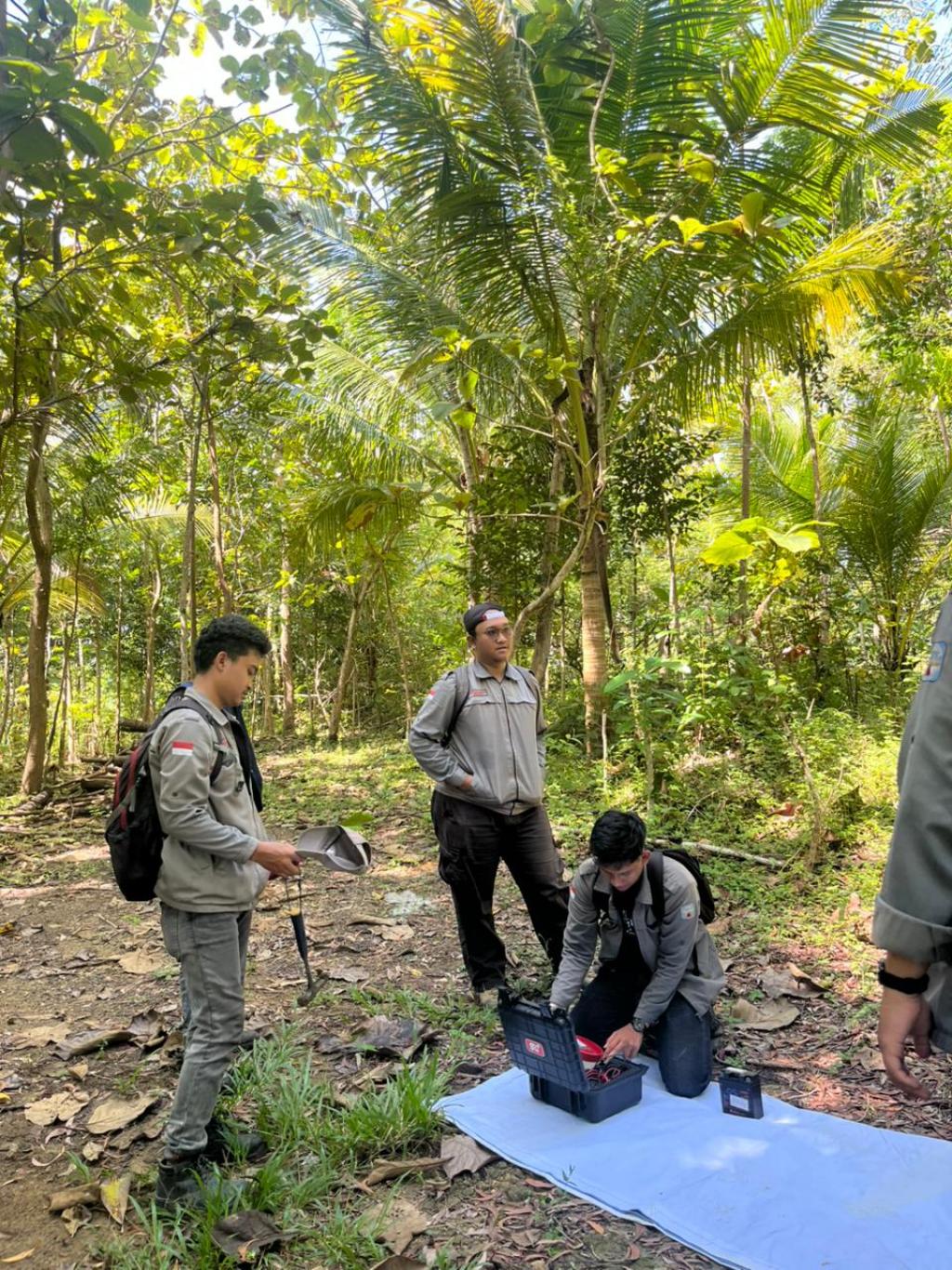 Dalam pelaksanaannya, mahasiswa melakukan pemasangan alat di beberapa titik pengukuran di sekitar lokasi terdampak. Proses pengambilan data dilakukan secara bertahap dengan tetap memperhatikan kondisi lingkungan serta keselamatan di lapangan.